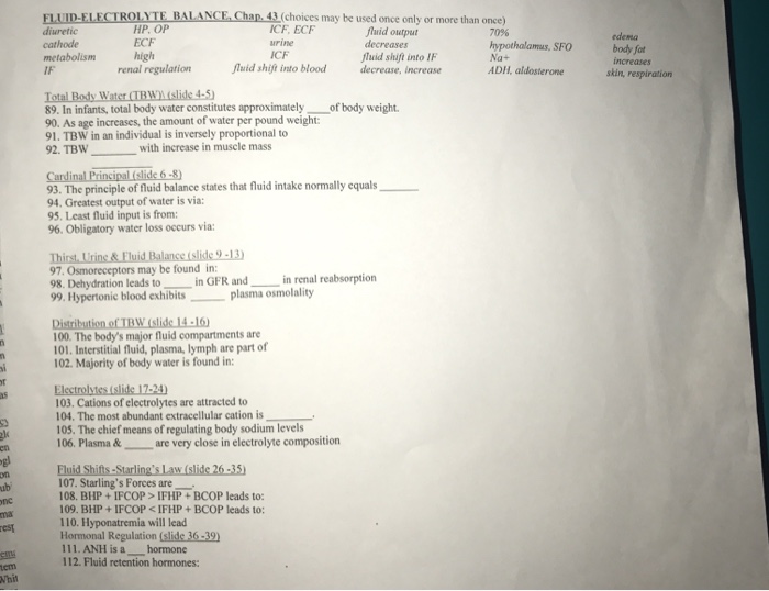 Solved Fluid Electrolyte Balance Chap 43 Choices May Be Chegg Com